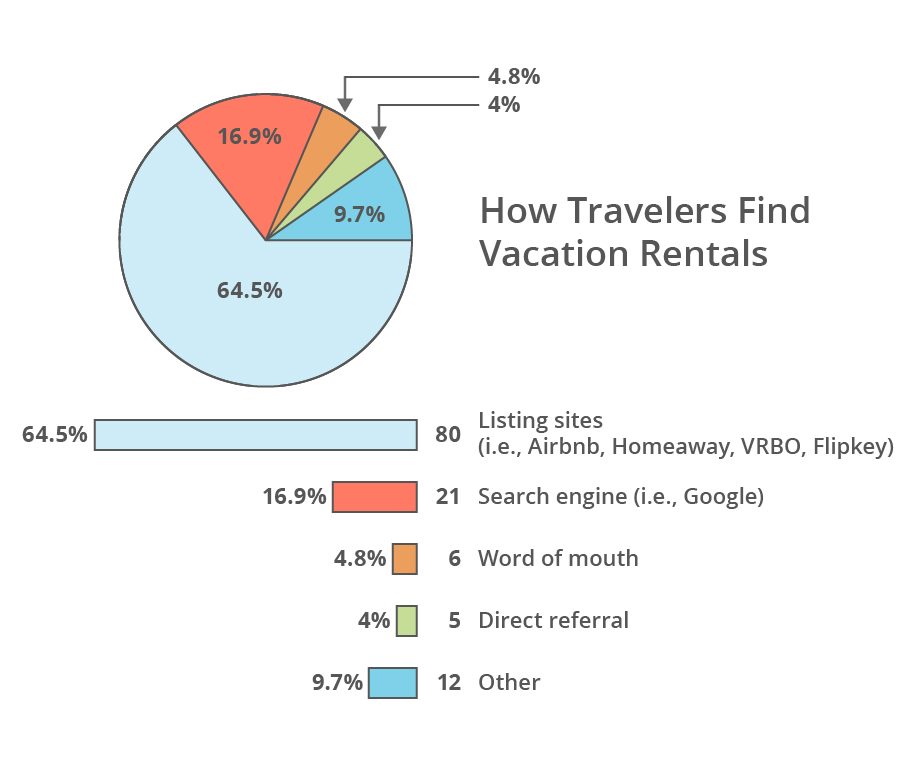 These millions of tourists need a place to stay, and many people prefer booking a cozy Airbnb over a hotel room because it allows for a more authentic experience. 64.5% of travelers use listing sites like Airbnb to find their vacation rental, and it’s projected that by 2020, vacation rentals will topple the hotel industry.