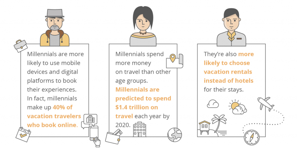 If you can pinpoint a target audience, it’s much easier to cater to their needs. For example, you might focus on getting business from millennials, as they value experiences more than materials, which means they’re more likely to spend their money on traveling than any other generation. In addition, they typically choose vacation rentals like Airbnbs instead of hotels. Millennials prefer to use their phones or other digital devices to book their travel plans – in fact, they make up 40% of online travel bookings. Appeal to this audience by responding quickly to their email inquiries, equipping your space with high-speed Internet and entertainment options like Netflix and Hulu, and go the extra mile by leaving a recommendation list of your favorite restaurants, bars, and other local places.
